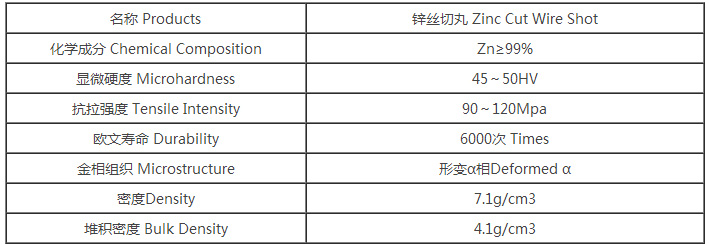 高硬度鋅丸:成分均勻、粒度精純、硬度適中、壽命長。比重接近鋼鐵類,硬度低,所以不但可以在不磨損產(chǎn)品表面的同時去除較大的毛刺而且在金屬表面形成防腐防銹層。與鋁類磨料不同,粉塵的著火點低,安全性好,并對工件表面具有增白效果。